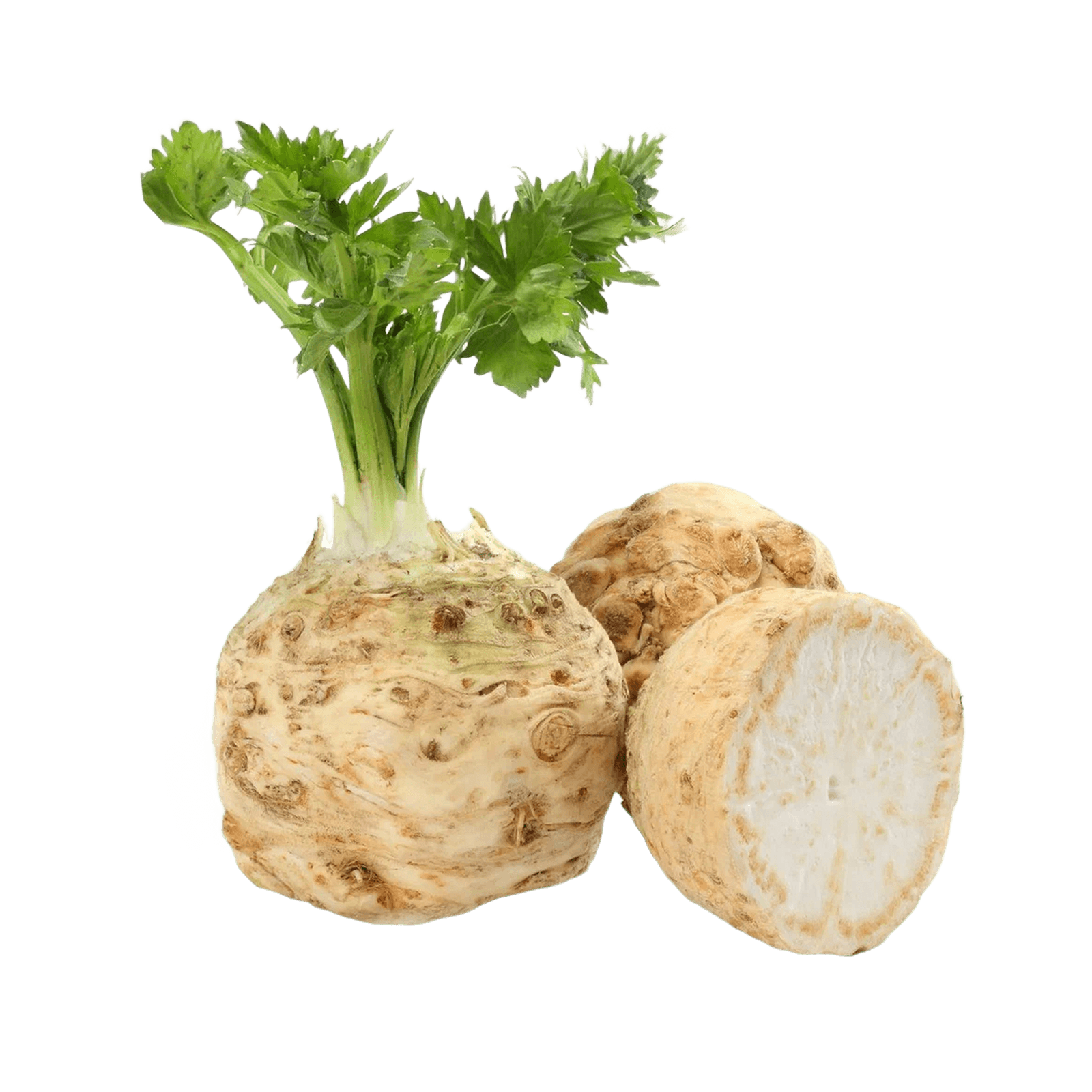 Многолетнее травянистое растение семейства зонтичных, выращиваемое ради сочного и плотного корнеплода. Отличается круглой формой, светло-коричневой бугристой кожурой и белой мякотью с характерным ароматом и нежным вкусом, напоминающим стеблевой сельдерей.