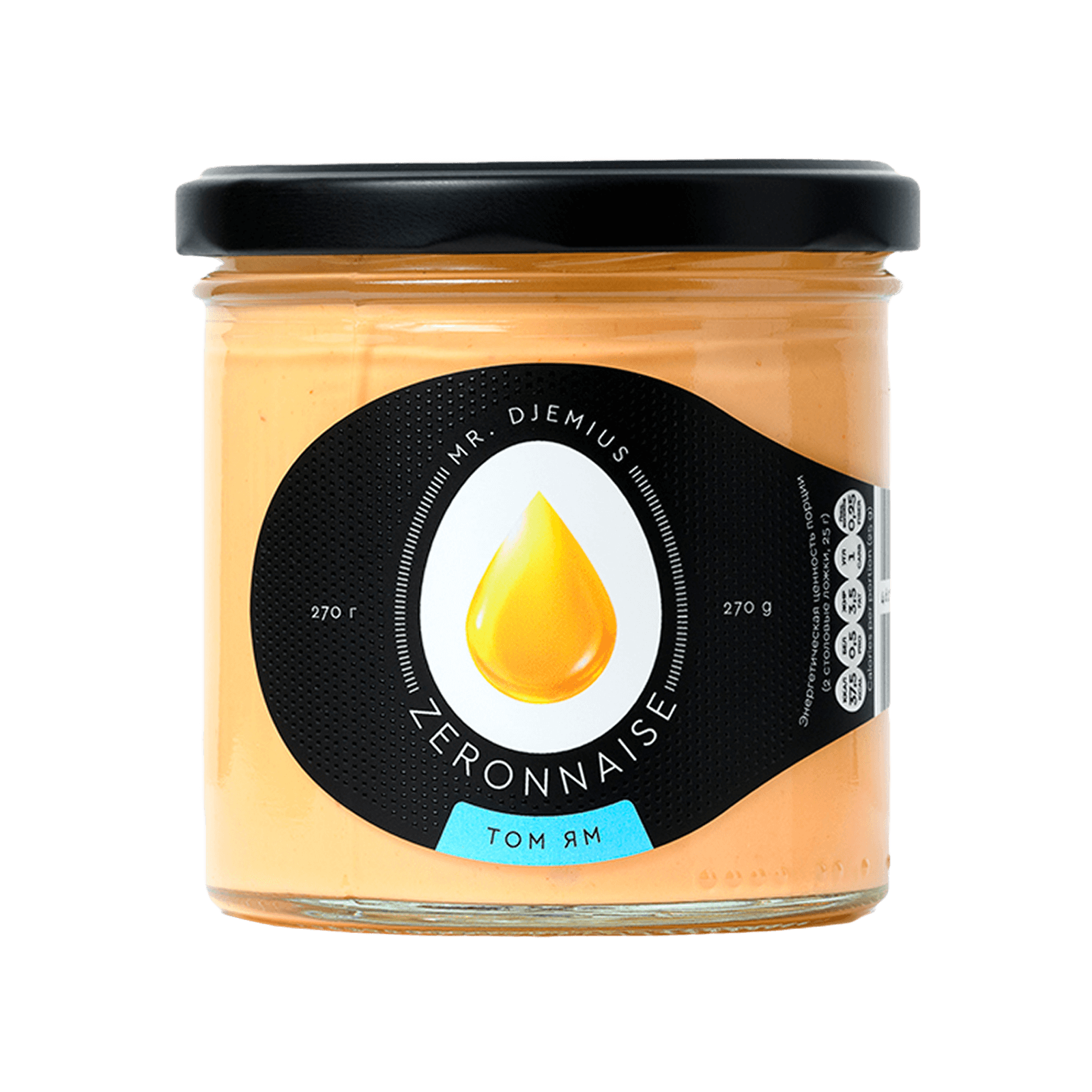 Том Ям — знаменитый тайский суп с многовековой историей, получивший мировое признание благодаря уникальному сочетанию кислых, острых и ароматических компонентов. Его название происходит от тайских слов «том« (варить) и «ям« (смешивать). Традиционно готовится с лемонграссом, галангалом, листьями каффир-лайма, перцем чили и рыбным соусом. Майонез как продукт появился во Франции в XVIII веке, а его диетические версии начали разрабатываться только в конце XX века. Компания Mr. Djemius ZERO, специализирующаяся на производстве низкокалорийных продуктов, решила объединить западную основу с восточными вкусами, создав инновационный соус Zeronnaise «Том Ям».