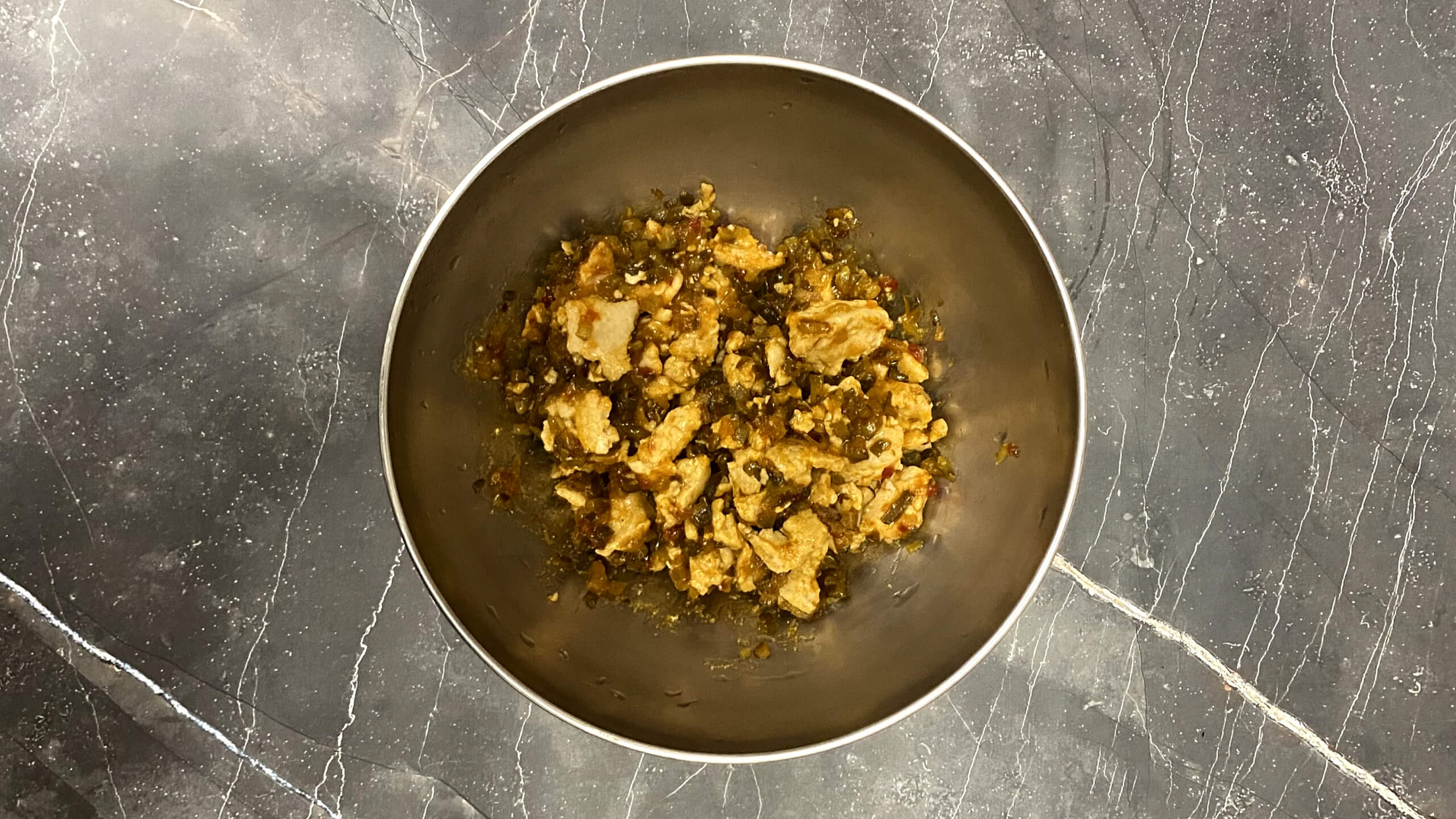 Пожарьте фарш и добавьте релиш (8 мин)