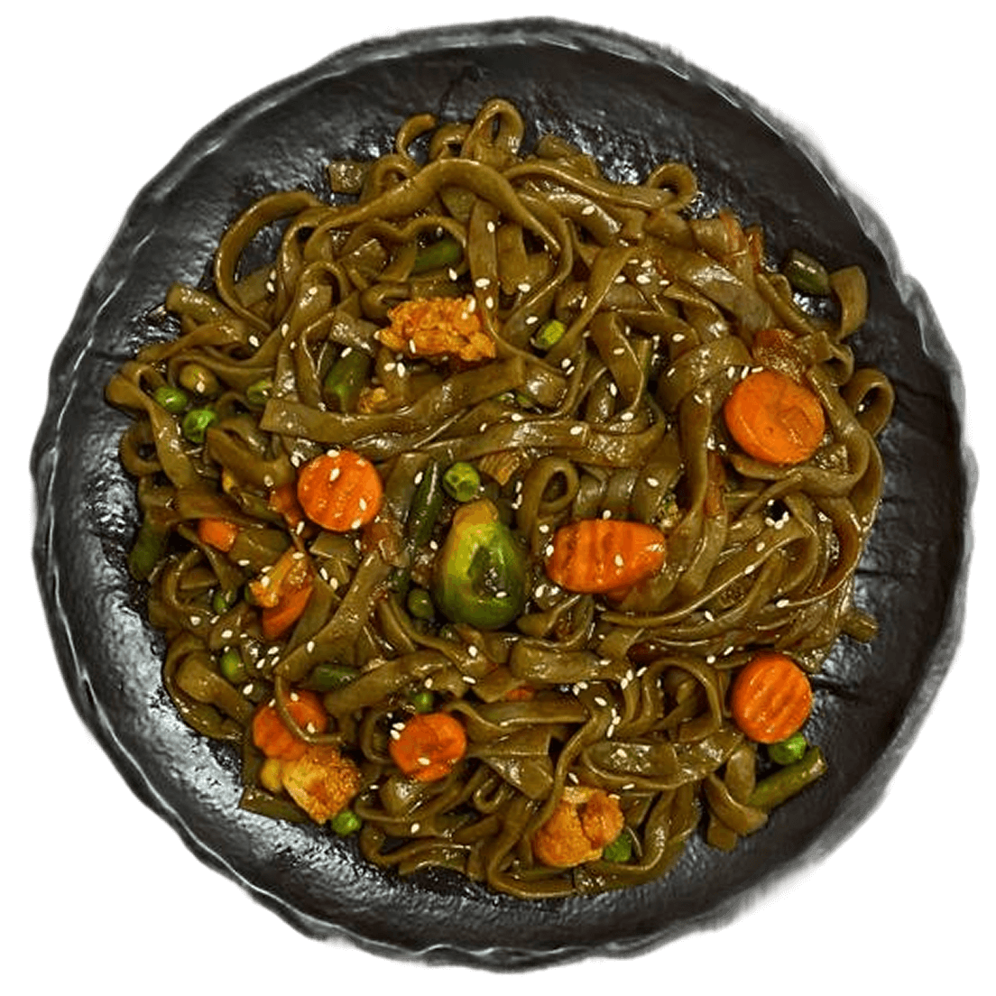 Вариация Wok-конструктора: гарниром выбраны ширатаки и овощная смесь, без источника белка.