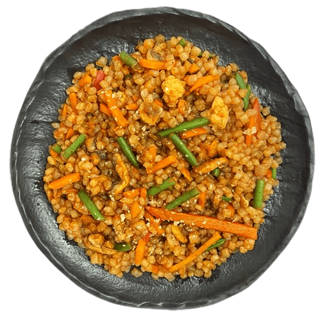 Вариация Wok-конструктора: гарниром выбраны ширатаки и овощная смесь, без источника белка.