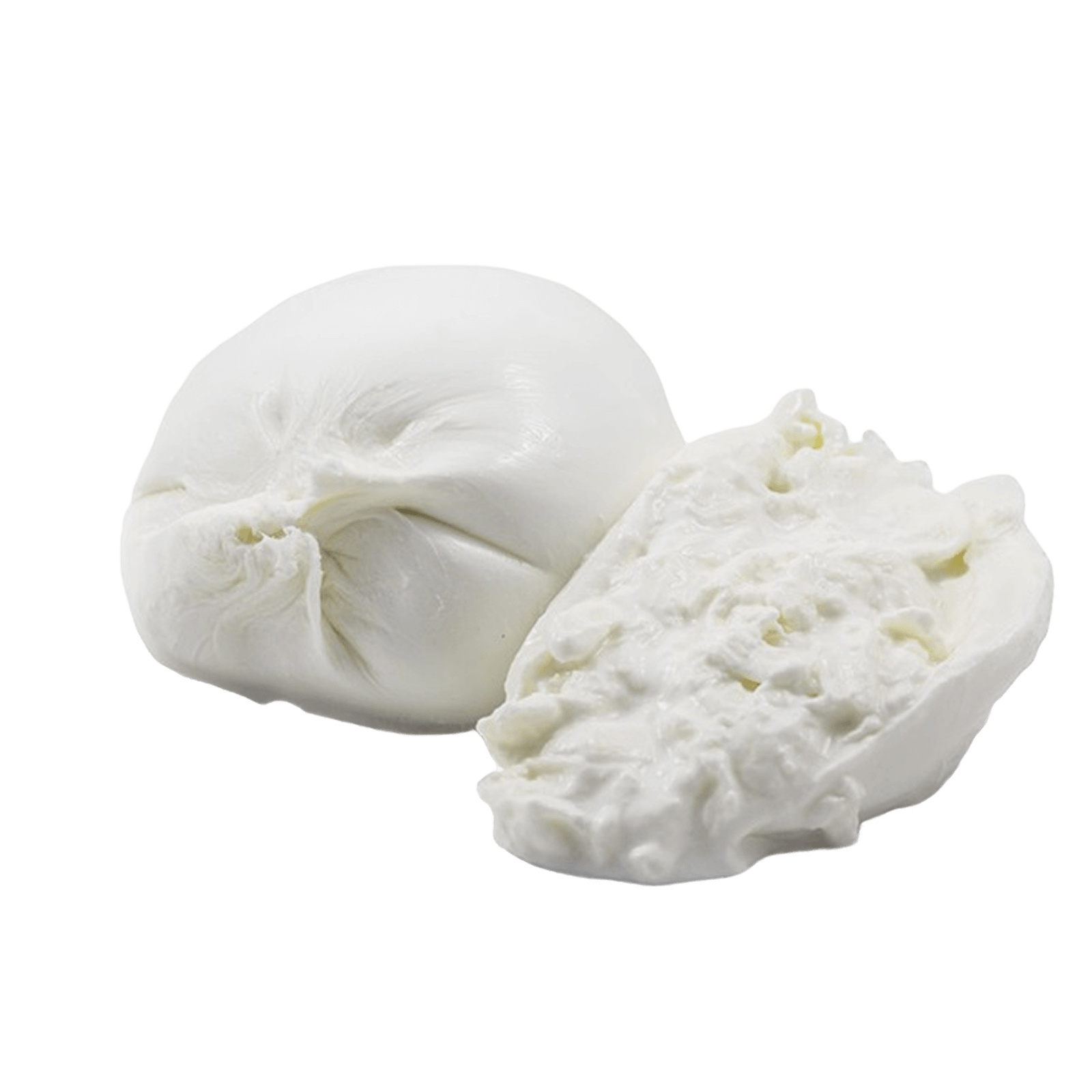 Буррата — это цельный сырный мешочек с начинкой из страчателлы. Страчателла — это только сама начинка (сырные нити в сливках), продаваемая отдельно.
