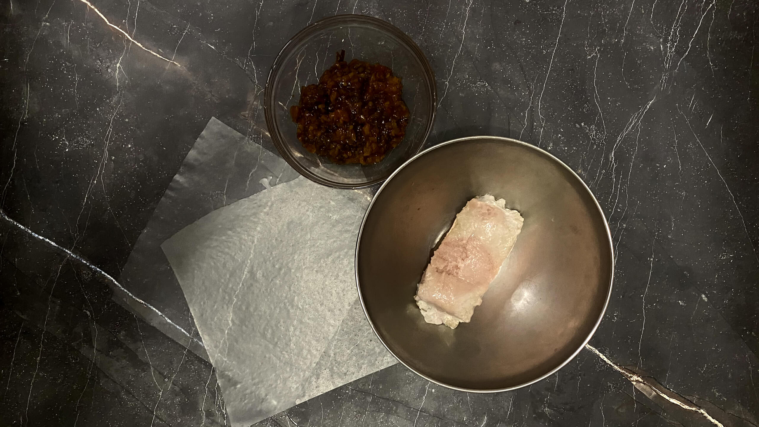 Спринг-роллы с куриным фаршем и соусом релиш