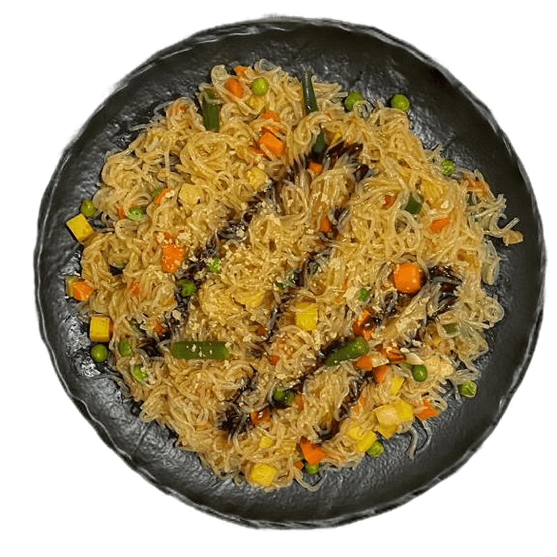 Вариация Wok-конструктора: гарниром выбраны ширатаки и овощная смесь, без источника белка.