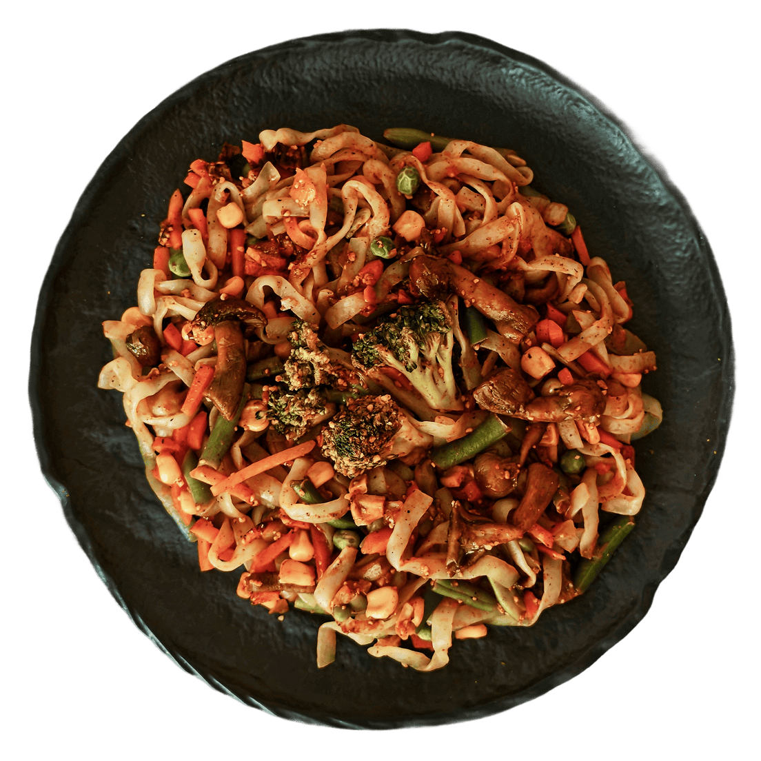Wok из фетучини ширатаки с овощами и опятами